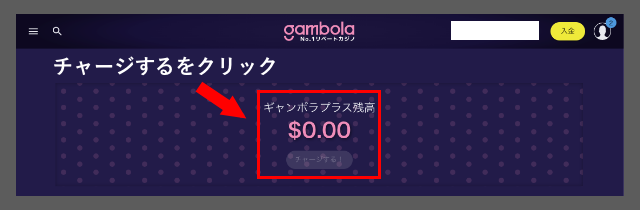 貯まったギャンボラプラスを有効化したい場合は、メニュー「ギャンボラプラス」から「チャージする!」をクリックしてください。