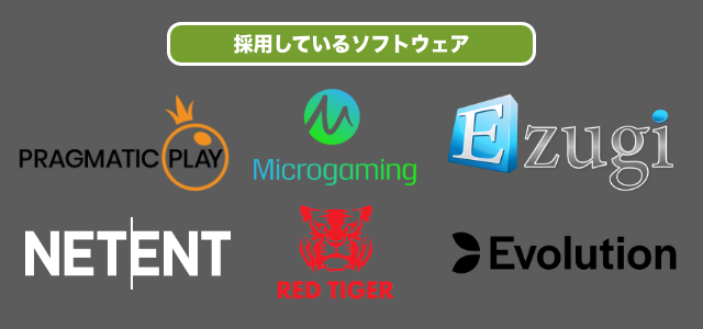 | ソフトウェア | Microgaming / NetEnt / RedTiger / Evolution / Ezugi / Progmatic Play |