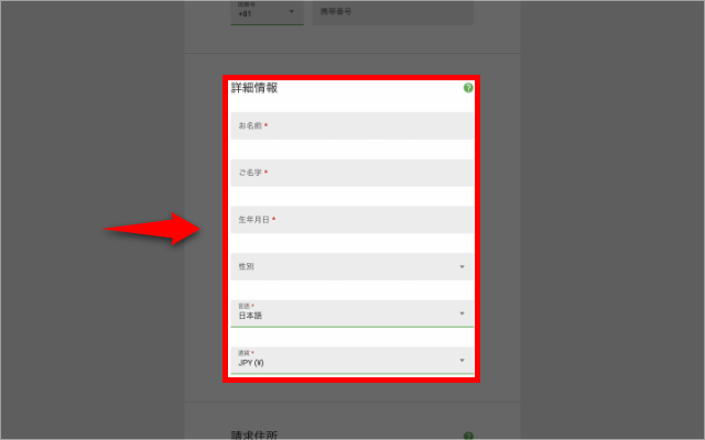 アカウント認証の際に「住所確認」が必要となるため、間違いのないよう気を付けましょう。