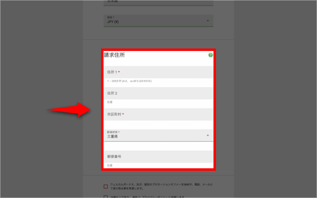 (5)住所を入力