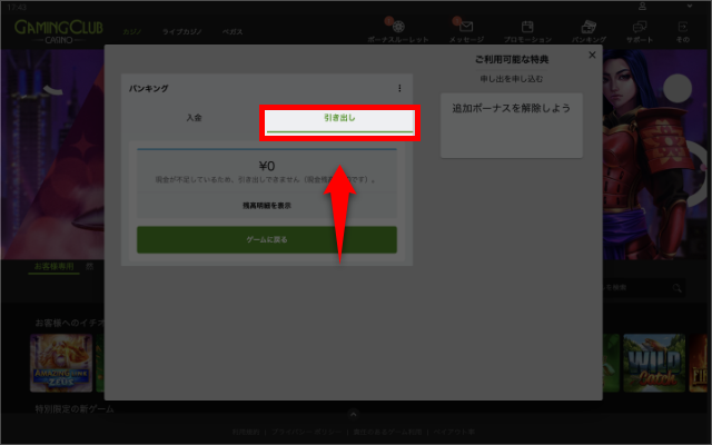 GAMING CLUB CASINOから出金する手順