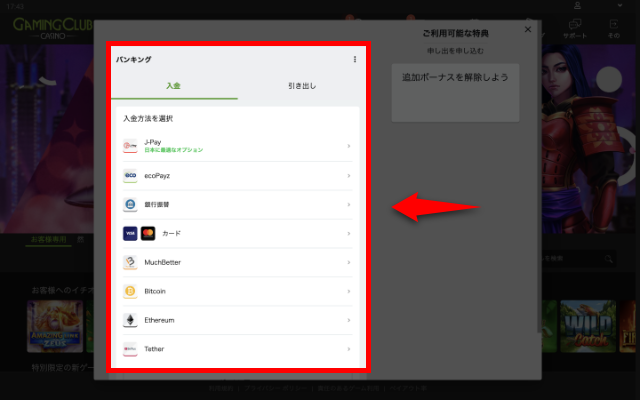 GAMING CLUB CASINO(ゲーミングクラブカジノ)で使用できる出金方法