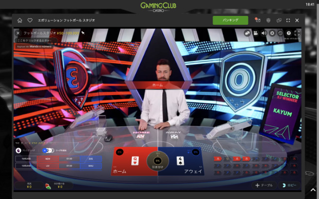 GAMING CLUB CASINOではEvolutiongamingライブカジノの「フットボールスタジオ」で遊ぶことができます。