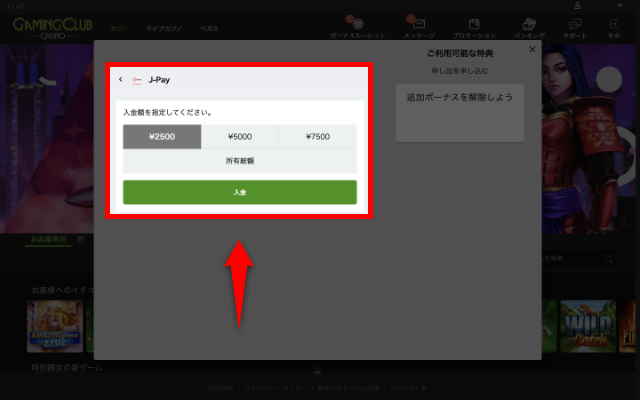 ゲーミングクラブカジノの入金手順
