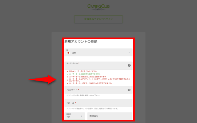 - GAMING CLUB CASINO(ゲーミングクラブカジノ)への登録方法
