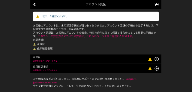 インターカジノでは本人確認書類を提出しなくても出金できますが、提出していた方が出金審査がスムーズなのです。