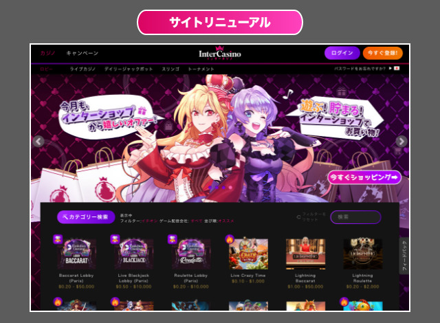 インターカジノはリニューアルし、初心者におすすめのオンラインカジノとして推奨されることも多いです。