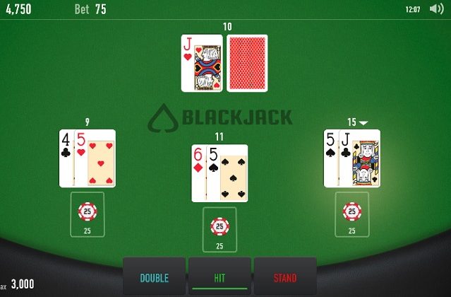 既存の札で勝負するならスタンド。 もう1枚カードをめくって合計値を増やしたい場合はヒット。 勝負をかけたい場合は、更にカードをめくって倍賭けするダブルで勝負します。