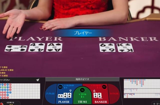 バカラは、PLAYERとBANKERのどちらが勝つか賭けるゲームです。