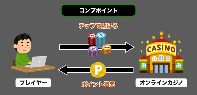 カジノジャンボリーのコンプポイントは、カジノゲームをリアルマネーで遊ぶと貯まっていくポイントです。クレジットカードなどの還元ポイントをイメージすると理解しやすいでしょう。