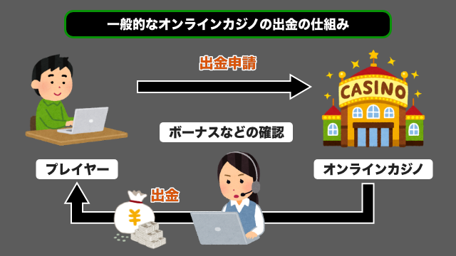 オンラインカジノの一般的なボーナスは、出金処理の必要な業務が多々あります。例えば、ボーナス利用規約を守っているか、不正を行っていないか等を細かくチェックしなければなりません。