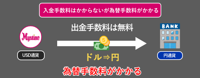 通常のオンラインカジノの場合、銀行送金の手数料が1~3%程度かかるため、エコペイズなどの電子決済サービスを選ぶことが多いですが、ミスティーノはその必要がありません。