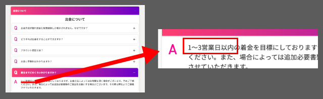 この目標だけでいえば一般的な出金スピードですが、口コミをみる限りでは、電子決済サービスを使った少額出金なら10分足らずで着金した人が多いようです。銀行送金でも2営業日でスピーディに着金したとの口コミもありました。