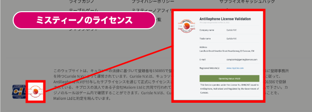 ミスティーノはキュラソーライセンス取得で安全性も高い!
