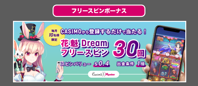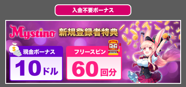 | ボーナス | ・$10+60回フリースピン(登録ボーナス) ・入金特典デイリースピン |