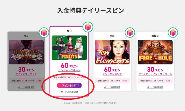 入金特典デイリースピン(入金ボーナス)の獲得方法