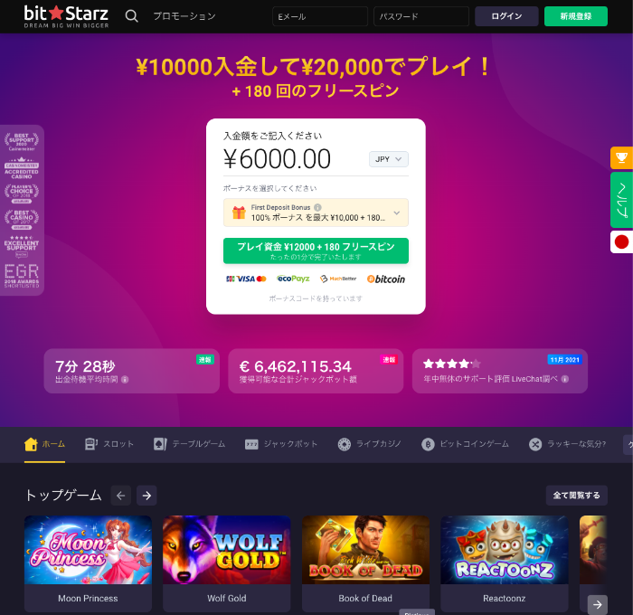 他にも仮想通貨で受け取れるボーナスが盛りだくさんなので、仮想通貨ユーザーはビットカジノとビットスターズを遊び比べてみてはいかがでしょうか。