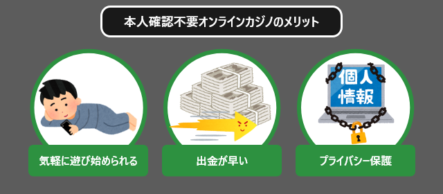ここからは本人確認不要なオンラインカジノのメリット下記3点について解説していきます。