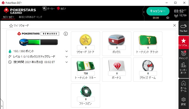 リウォードポイントは、ポーカースターズ内のオンラインポーカーやカジノゲームでプレイすると獲得できます。