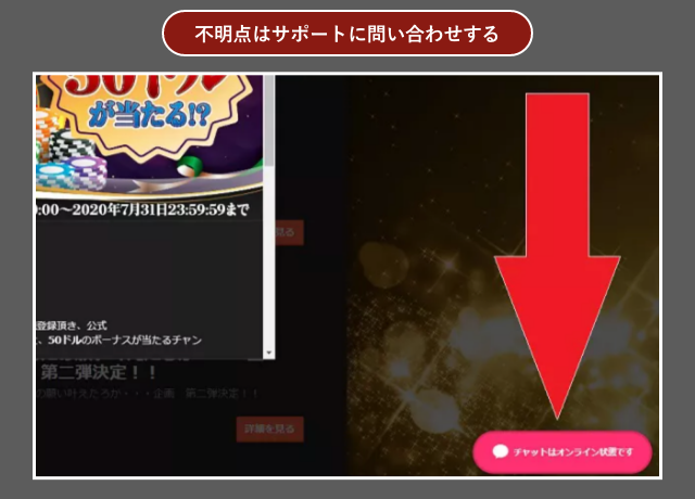 登録後はライブチャットで「Casimoから登録したので入金不要ボーナスとフリースピンをください」とメッセージを入れてください。承認され次第、入金不要ボーナスもフリースピンもすぐ使えるようになりますよ。