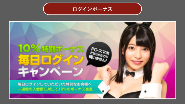 ログインボーナスは、1週間毎日ログインされた方に対してボーナスが提供されるサービスです。