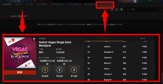 トーナメントボーナスは、ロイヤルベガスカジノで開催されるトーナメントで上位入賞した際に獲得できます。
