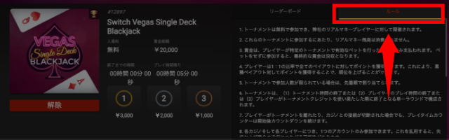 トーナメントルールは、『リーダーボード』の隣にある『ルール』タブから確認できます。
