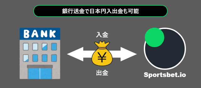 スポーツベットアイオーは仮想通貨メインのオンラインカジノですが、実は銀行送金を使って入出金することもできます。