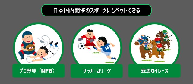 野球、サッカー、テニス、ゴルフ、格闘技、eスポーツなど。スポーツと聞いて思いつくものはほとんどベット対象だといってもいいでしょう。