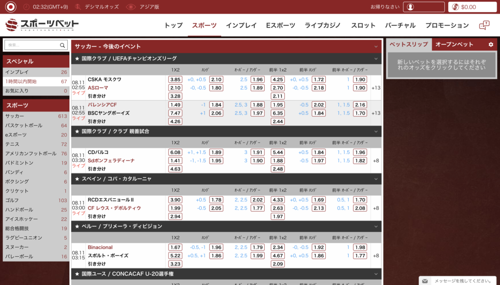 - スポーツブックは完全日本語対応