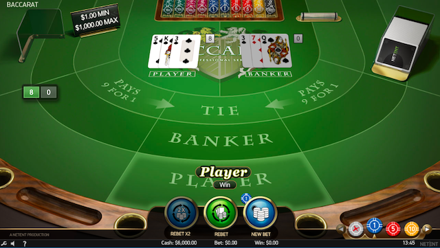 ベラジョンカジノはカジノゲームを無料でプレイできるので、今回はその中のテーブルゲーム「Baccarat Pro」で調べてみることにしました。