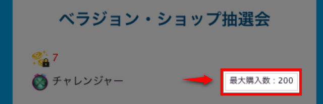 アイテムごとに購入回数の制限が決められています。購入画面にある「最大購入数」が購入回数上限です。
