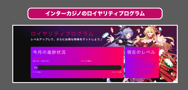 インターカジノがクレジットを貯める「ロイヤリティプログラム」です。