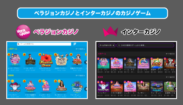 ベラジョンカジノとインターカジノの異なる点の詳細は次項で解説していきます。