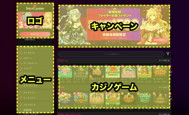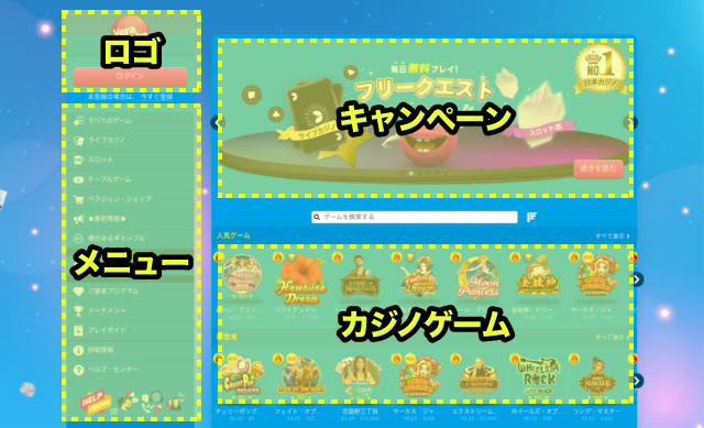 ベラジョンカジノとインターカジノはサイトの配色やキャラクターに違いはありますが、それ以外の基本的なサイトの作りはほとんど同じです。