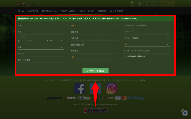 ワイルドジャングルカジノの登録方法