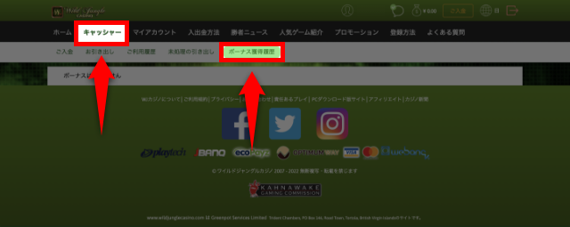 ワイルドジャングルカジノから出金する手順