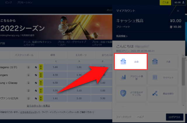 最後に「出金」をクリックすれば、ウィリアムヒルカジノでの出金手続きは完了です。