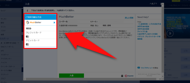 | 入金方法 | クレジットカード(VISA / Master / Diners) / ecoPayz / MuchBetter |
