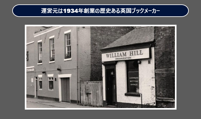 ウィリアムヒルカジノの運営元であるウィリアムヒル(William hill plc)は英国最大級のブックメーカーです。ウィリアムヒルの歴史は古く、およそ100年前の1934年からブックメーカー業を開始しました。