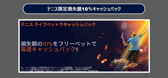 | ライブベット限定10%キャッシュバック | $100 | なし | 4日間 |