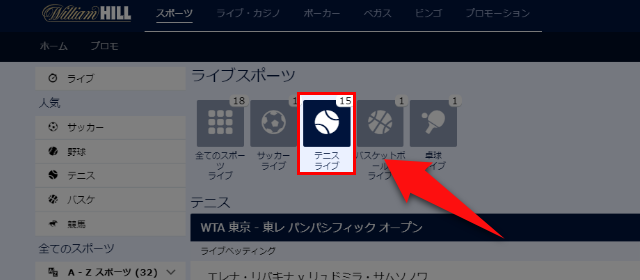 増強オッズ対象試合はプロモーション「増強オッズ」ページにある「ベットする」をクリックすればご確認いただけます。