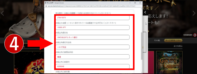 (1)入金画面を開く