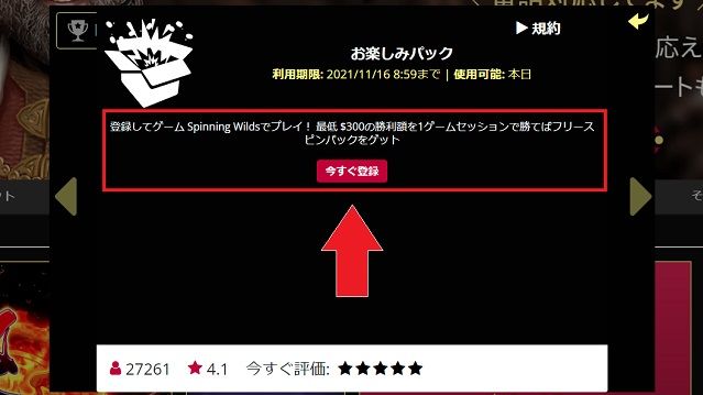 ボーナスページにて「今すぐ登録」をクリックすると、日替わりプロモへの参加登録が完了します。