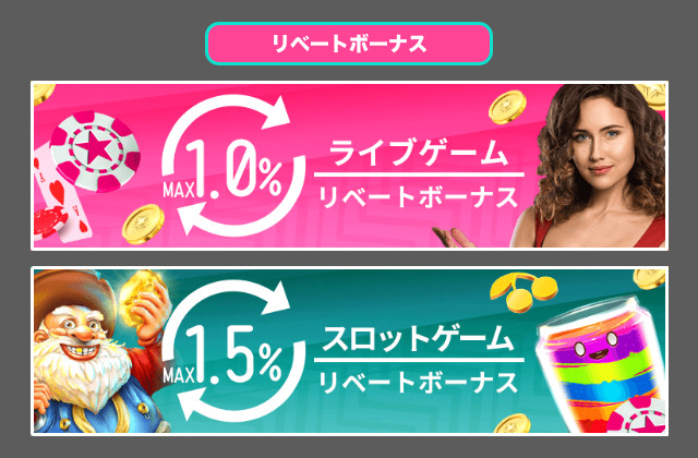 | 紹介したプレイヤー | 紹介されたプレイヤーが受け取ったリベートボーナスの10%分と同額のボーナス |