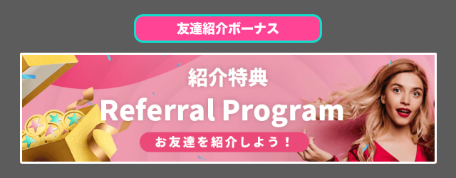 - 友達紹介ボーナスで進呈されるボーナスは全て出金条件1倍です。