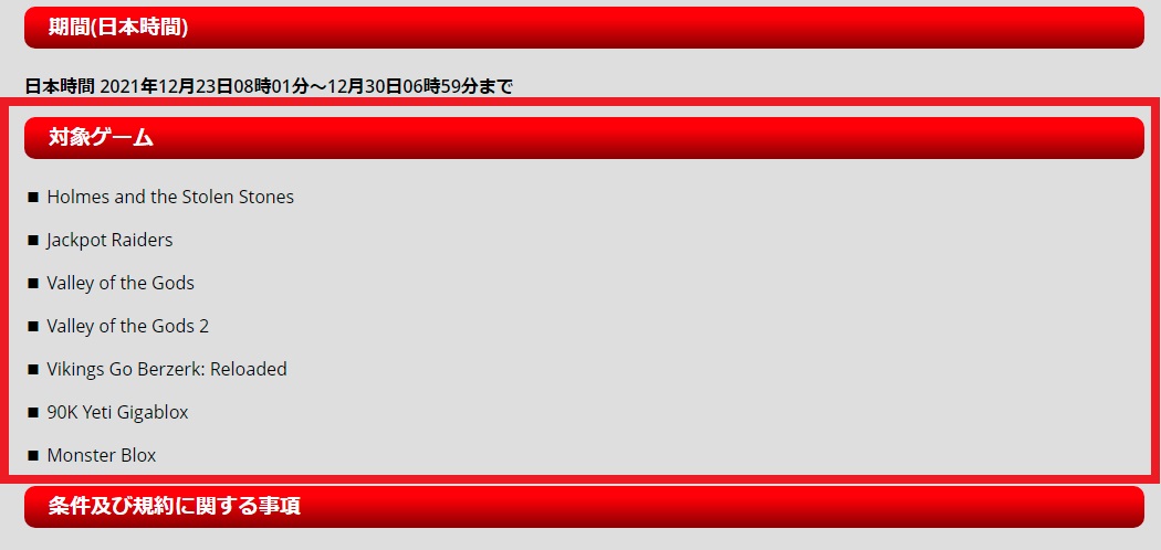 | 入金額300%初回入金ボーナス | スロットゲーム以外全て |