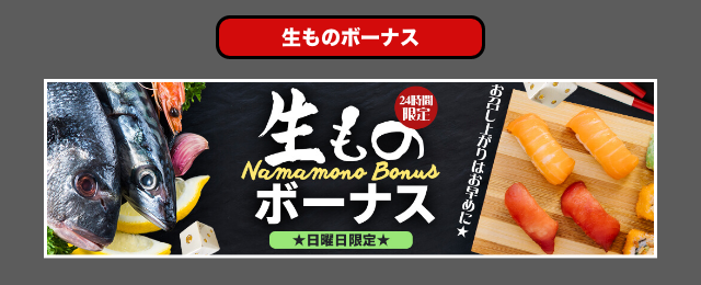 「生ものボーナス」は獲得から24時間以内に出金条件を消化しなければならない上級者向けの入金ボーナスです。
