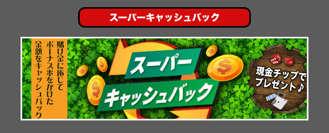 「スーパーキャッシュバック」は対象期間中に負け越したプレイヤーだけが受け取れるボーナスです。