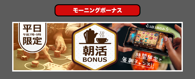 「モーニングボーナス」は平日の毎朝7時~9時限定で申請できる最大$100の50%入金ボーナスです。